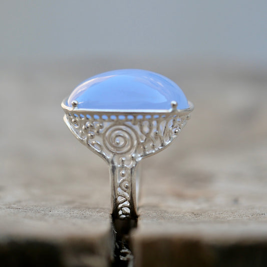 12. Bule Chalcedony Silver Ring / R-119