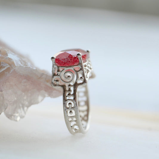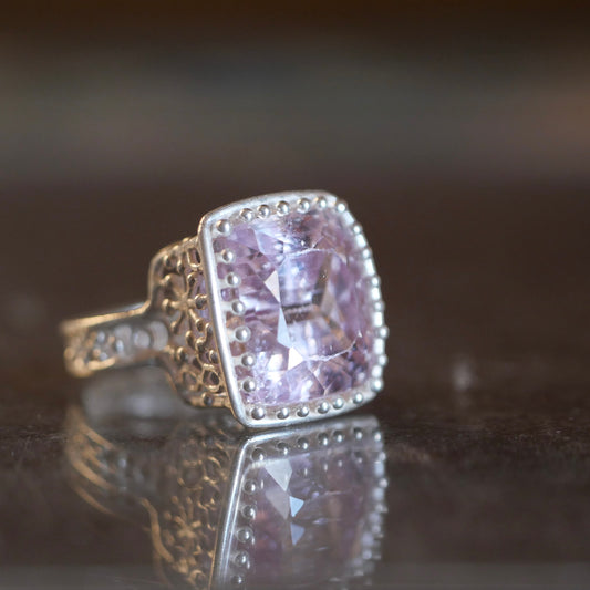 51. Pink Tourmaline Rough Silver Ring /23R-293