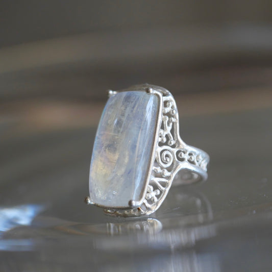 42. Rainbow Moonstone Silver Ring / 23 R-168