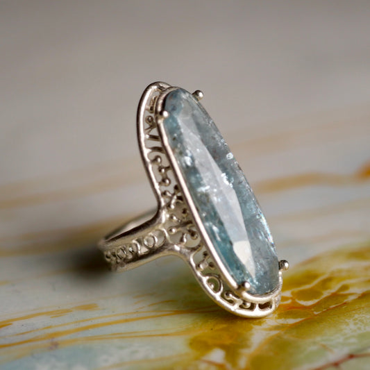 92. Dumortierite in Quartz Silver Ring / 24R-324