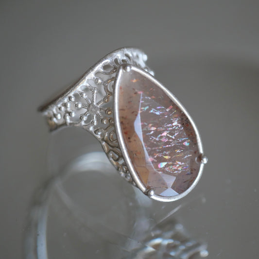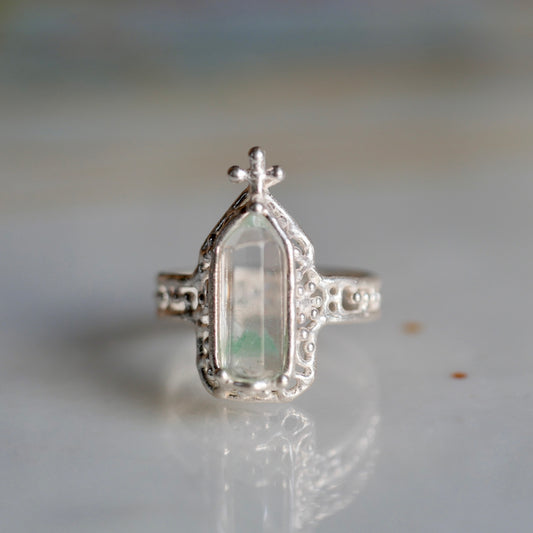 75. Fuchsite in Quartz Silver Ring / 24R-268