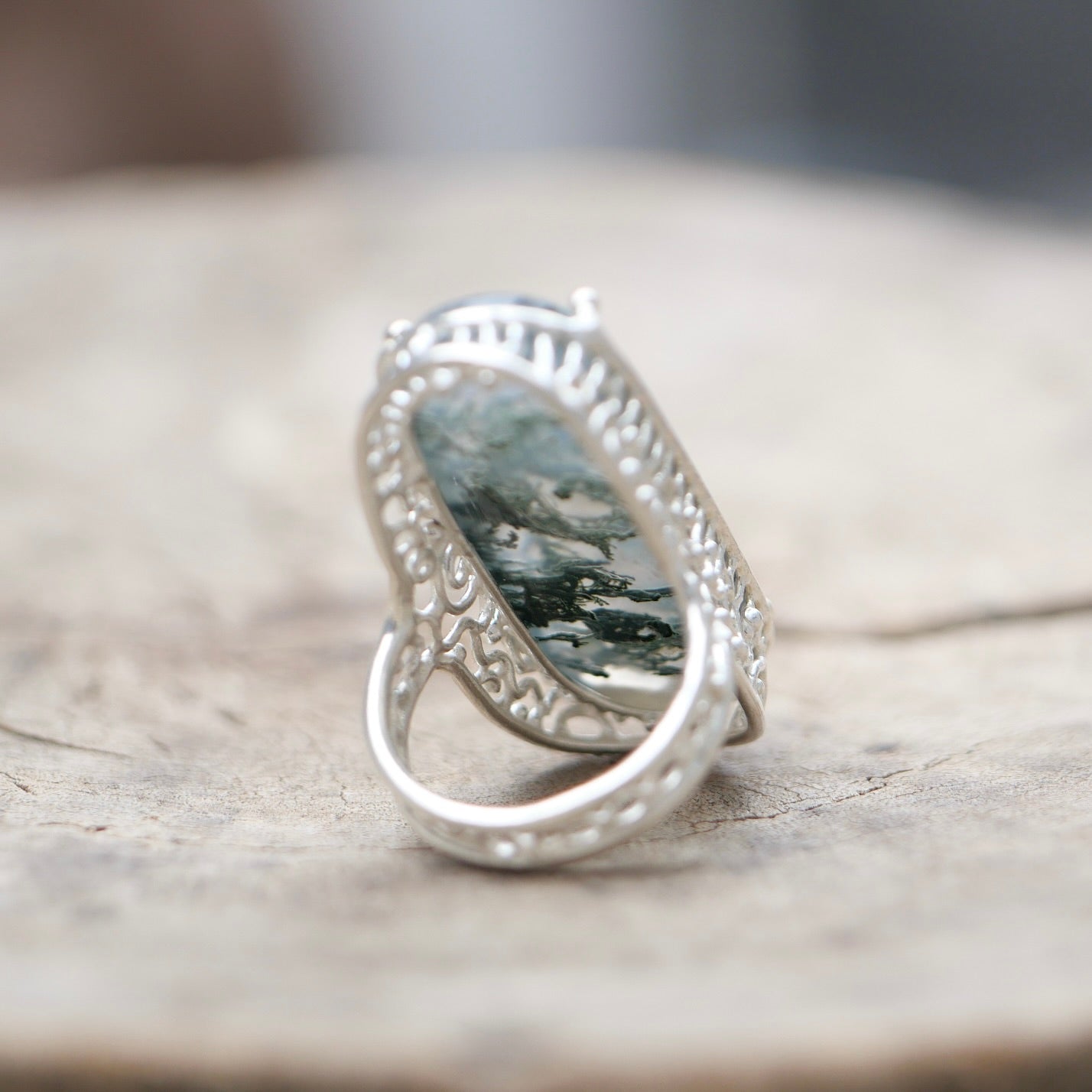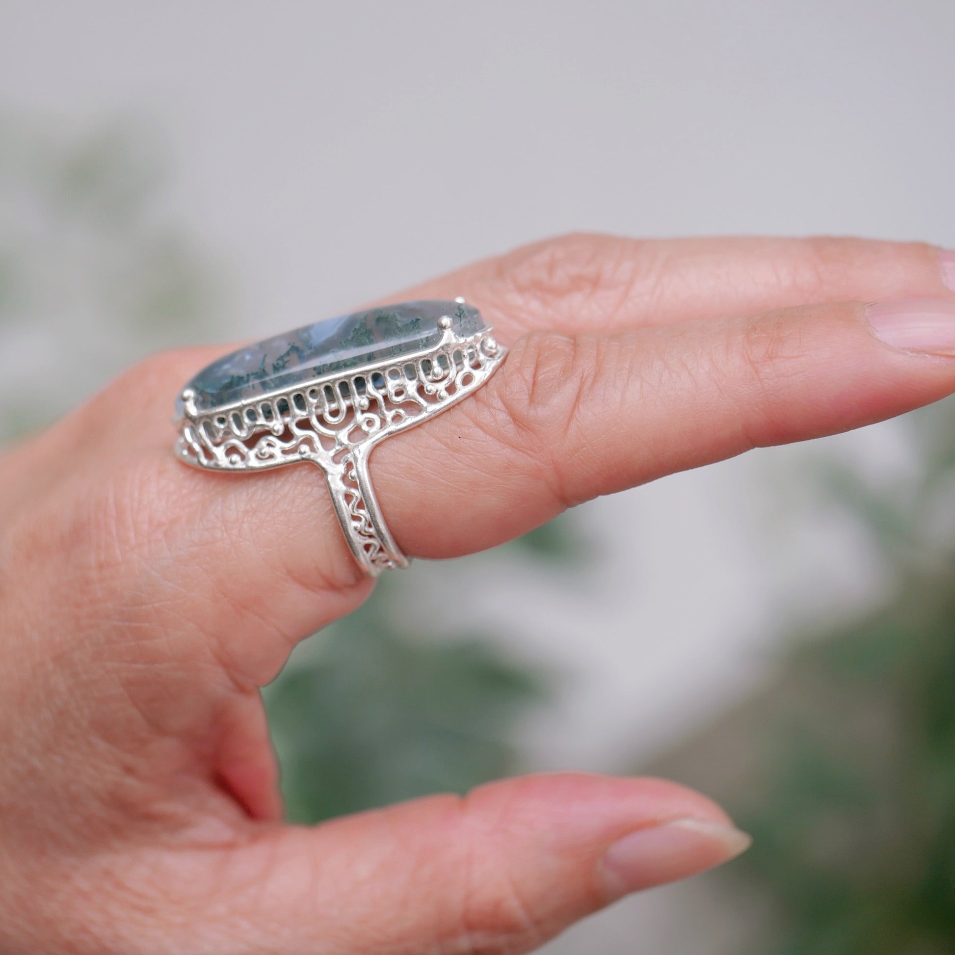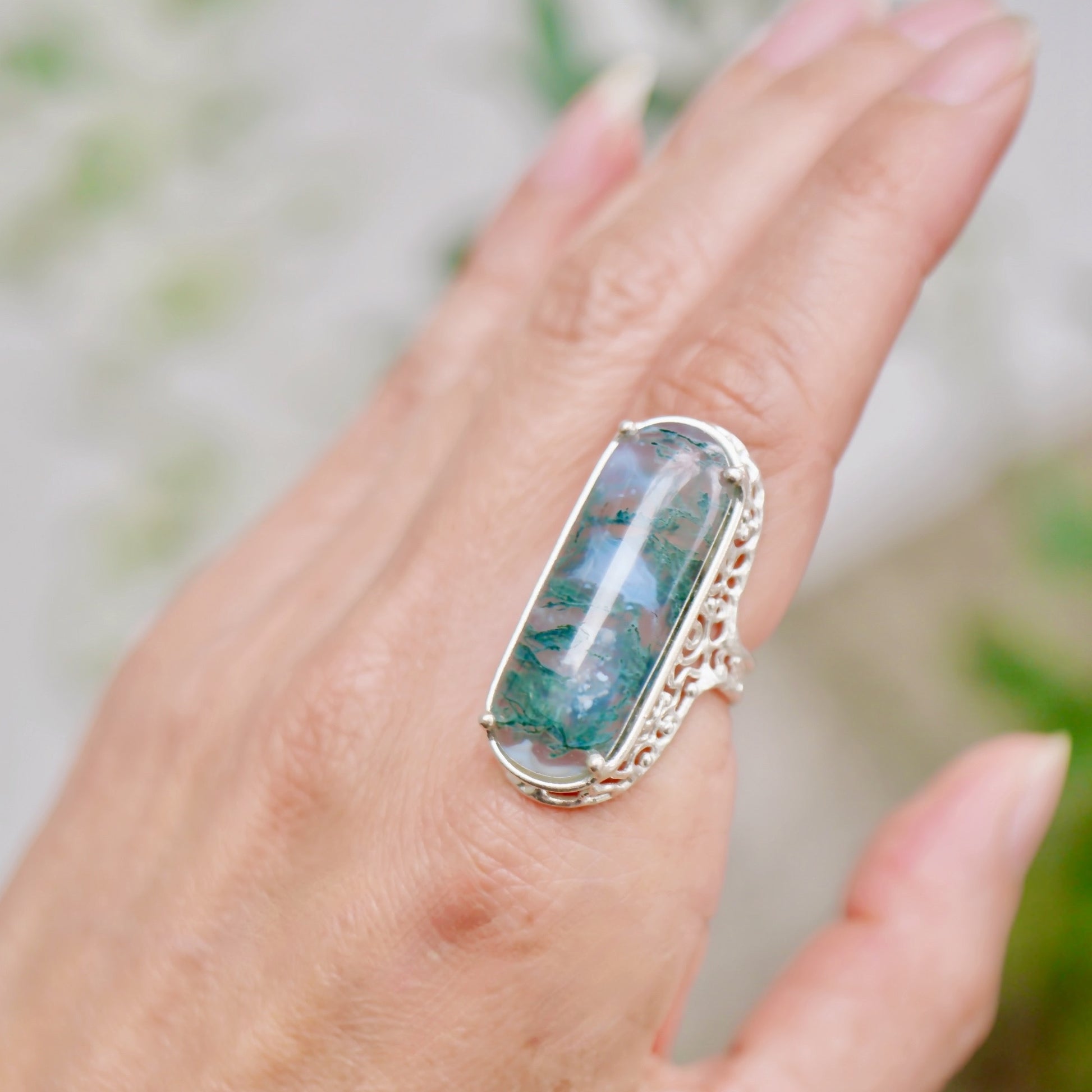 Moss Agate Silver Ring / 22R-461