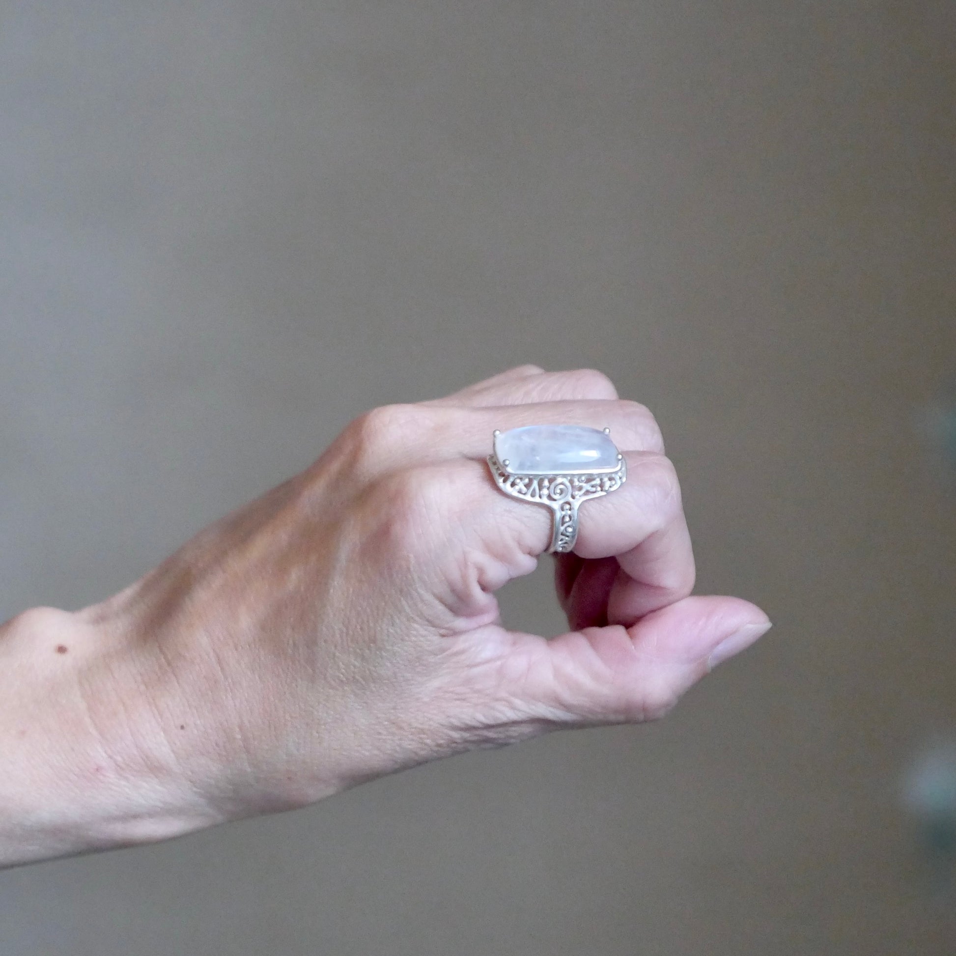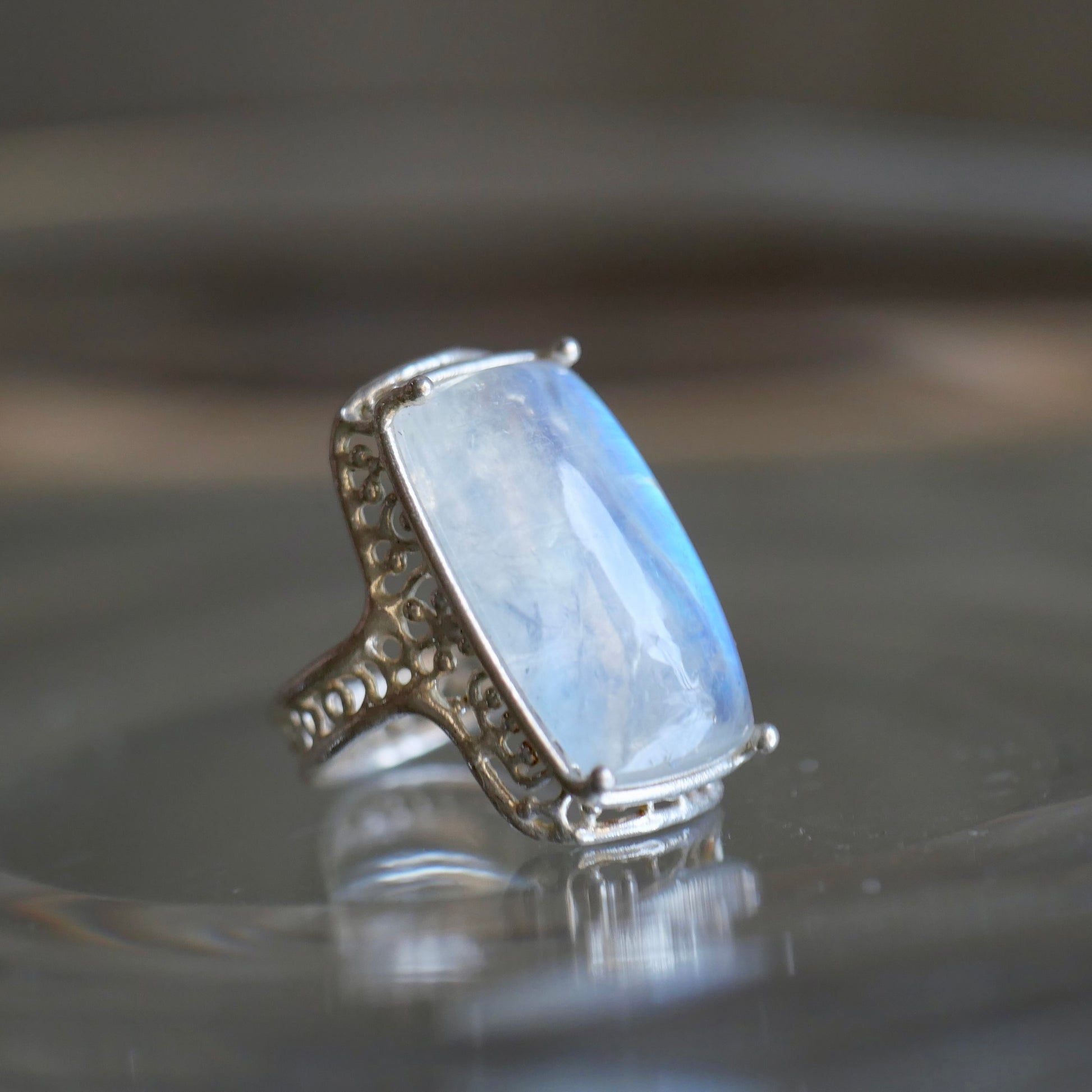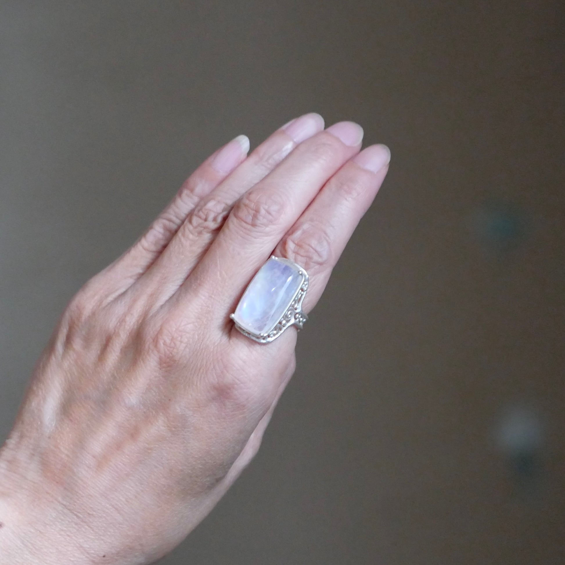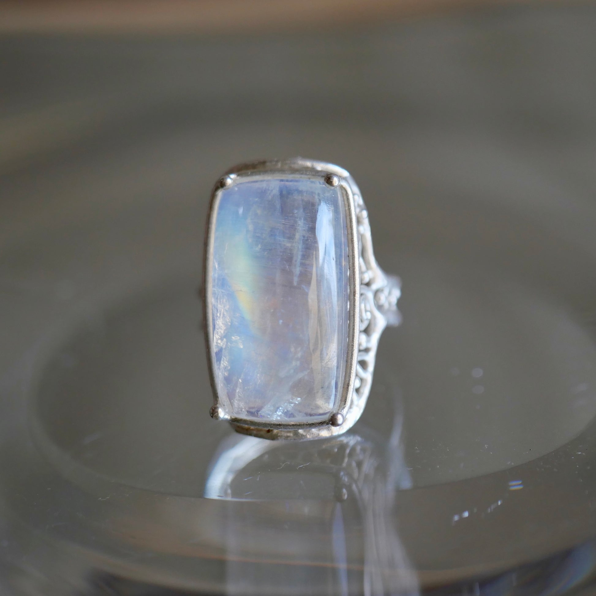 42. Rainbow Moonstone Silver Ring / 23 R-168