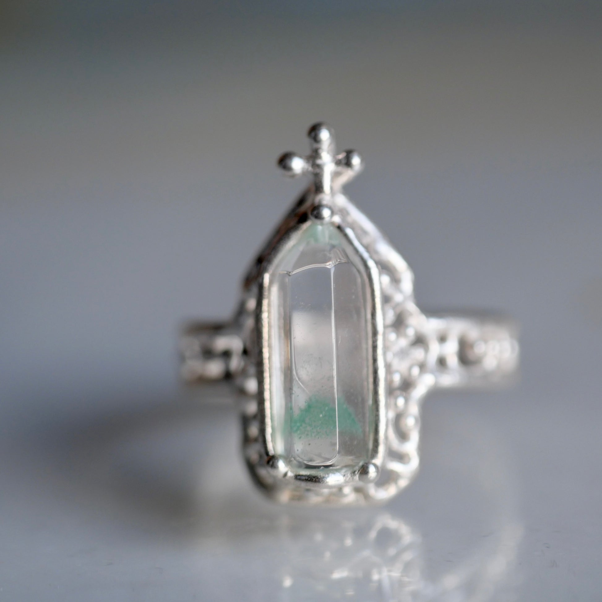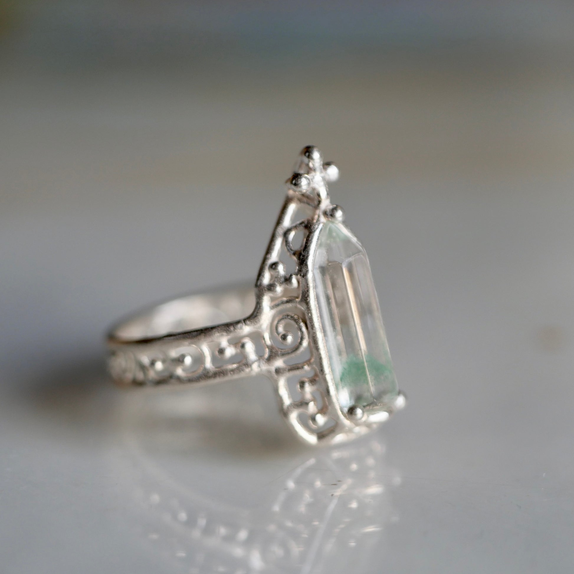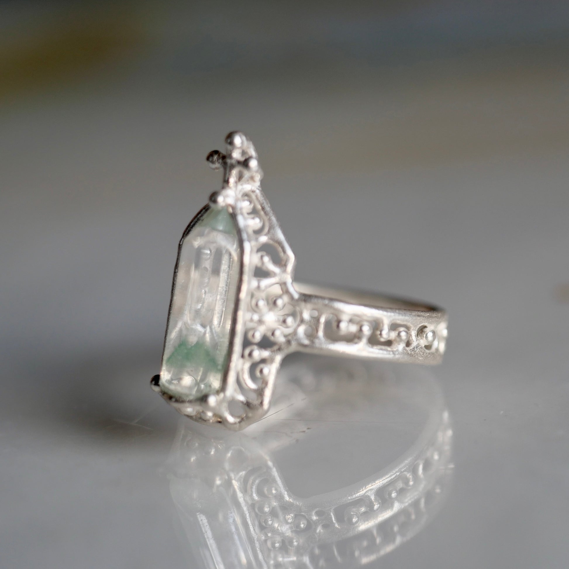 75. Fuchsite in Quartz Silver Ring / 24R-268