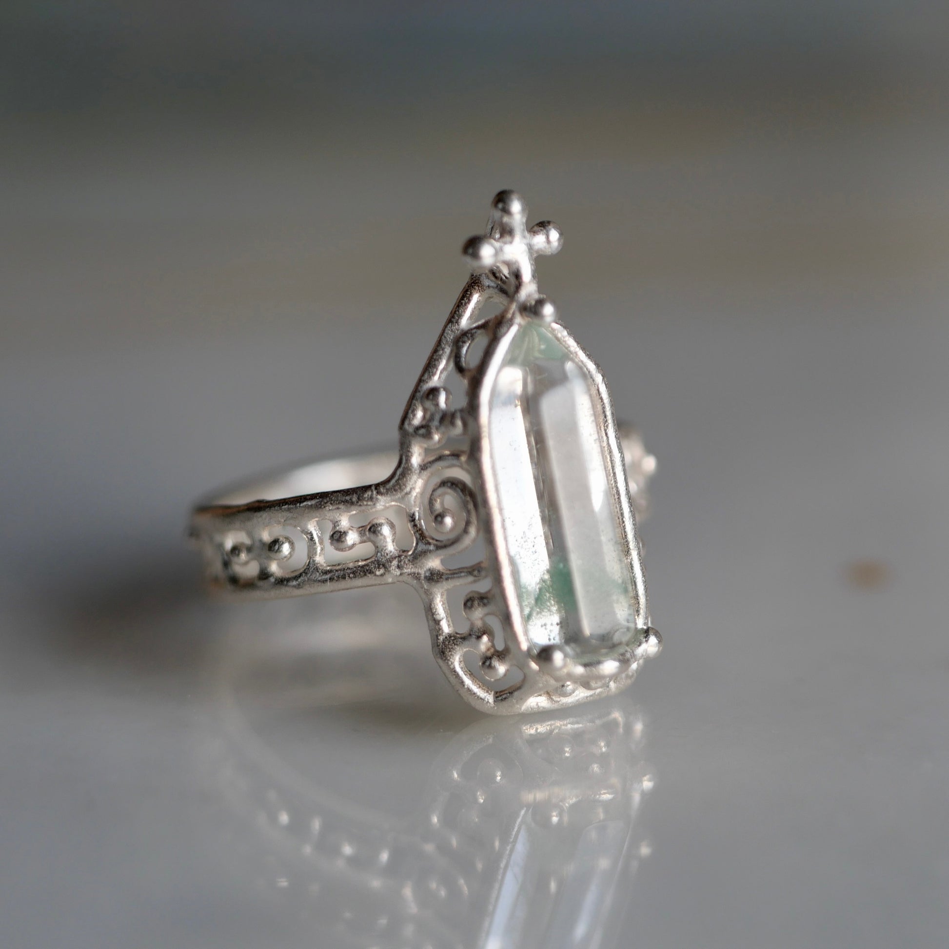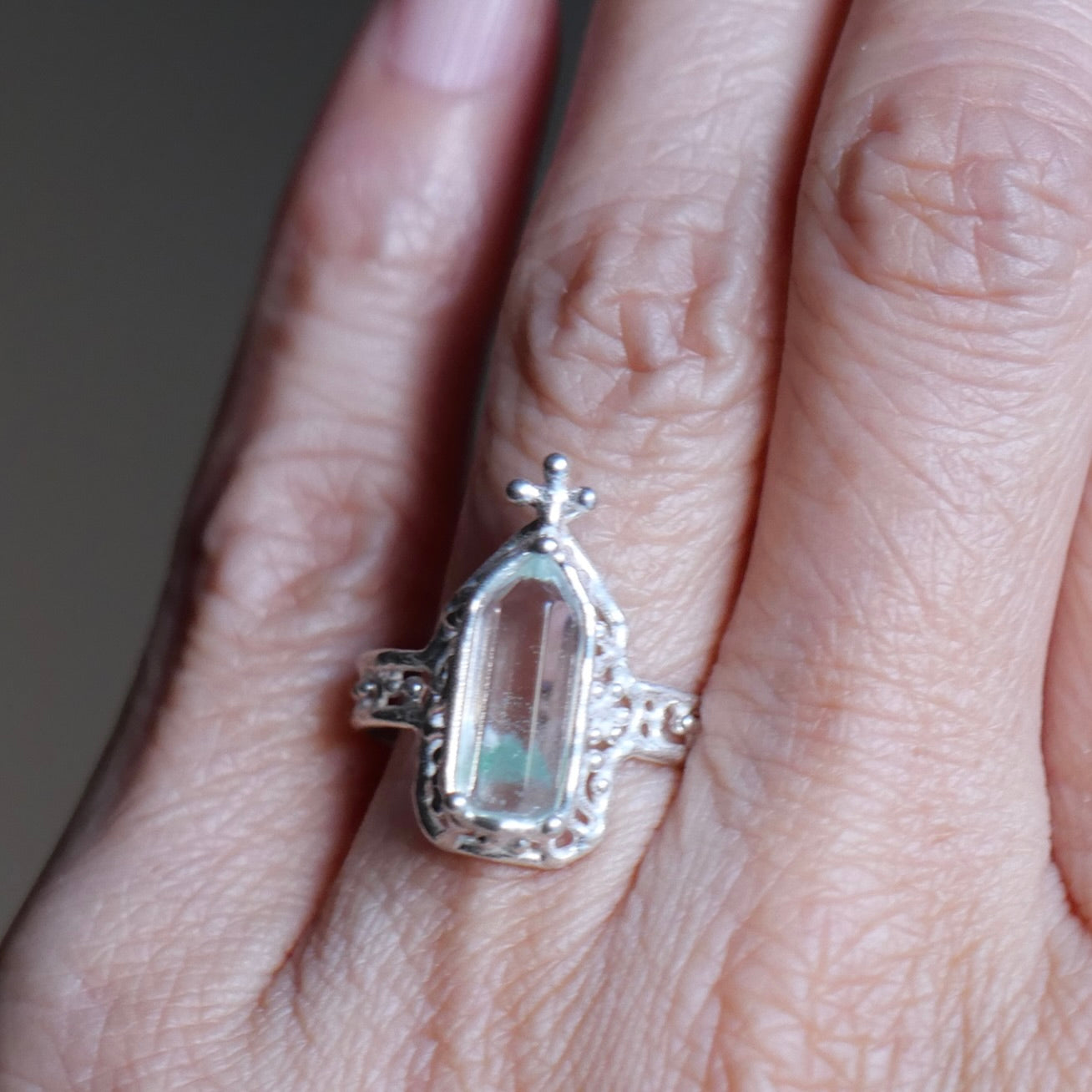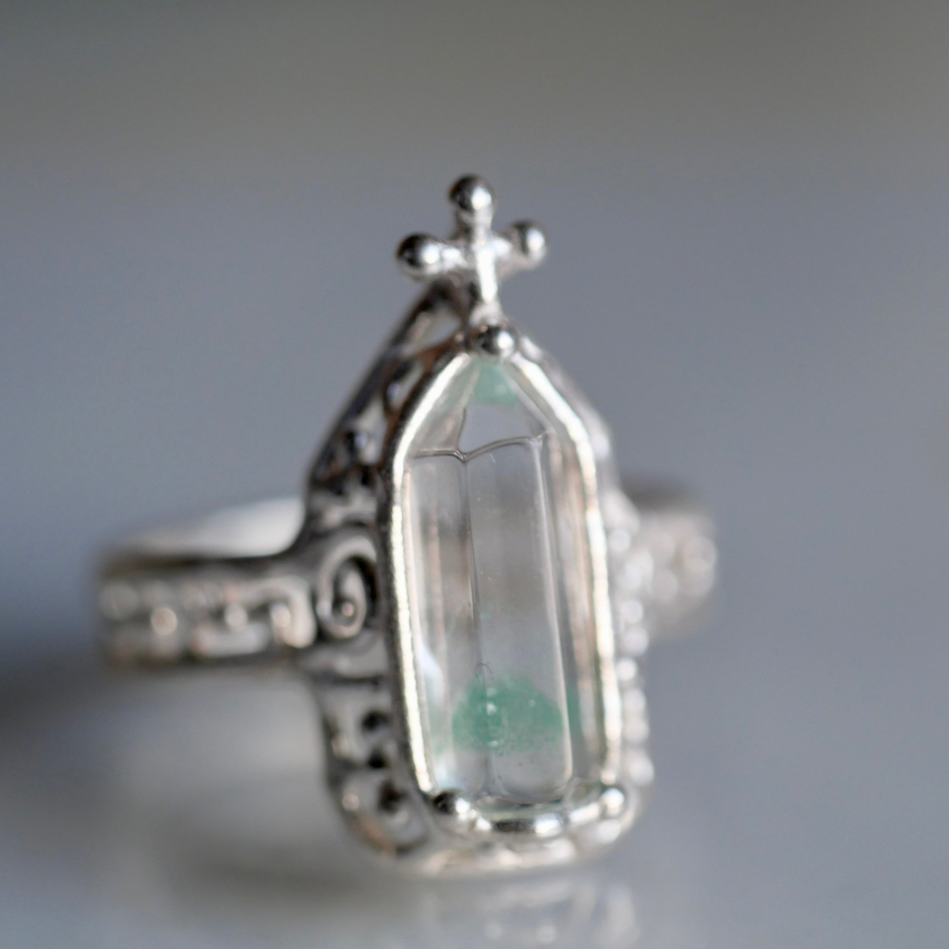 75. Fuchsite in Quartz Silver Ring / 24R-268