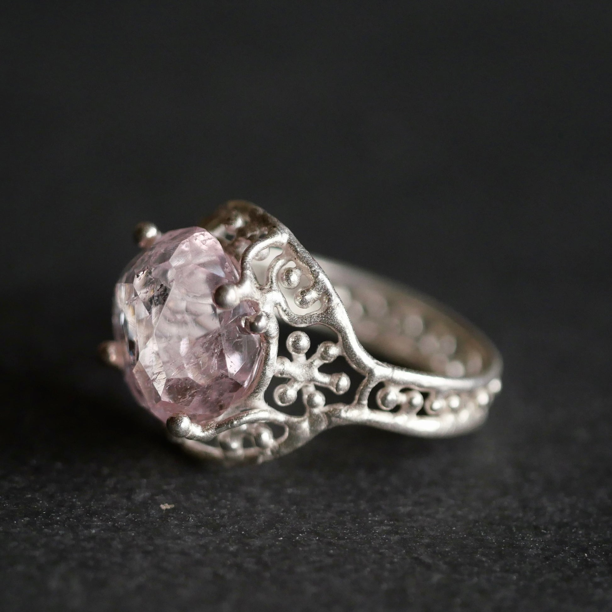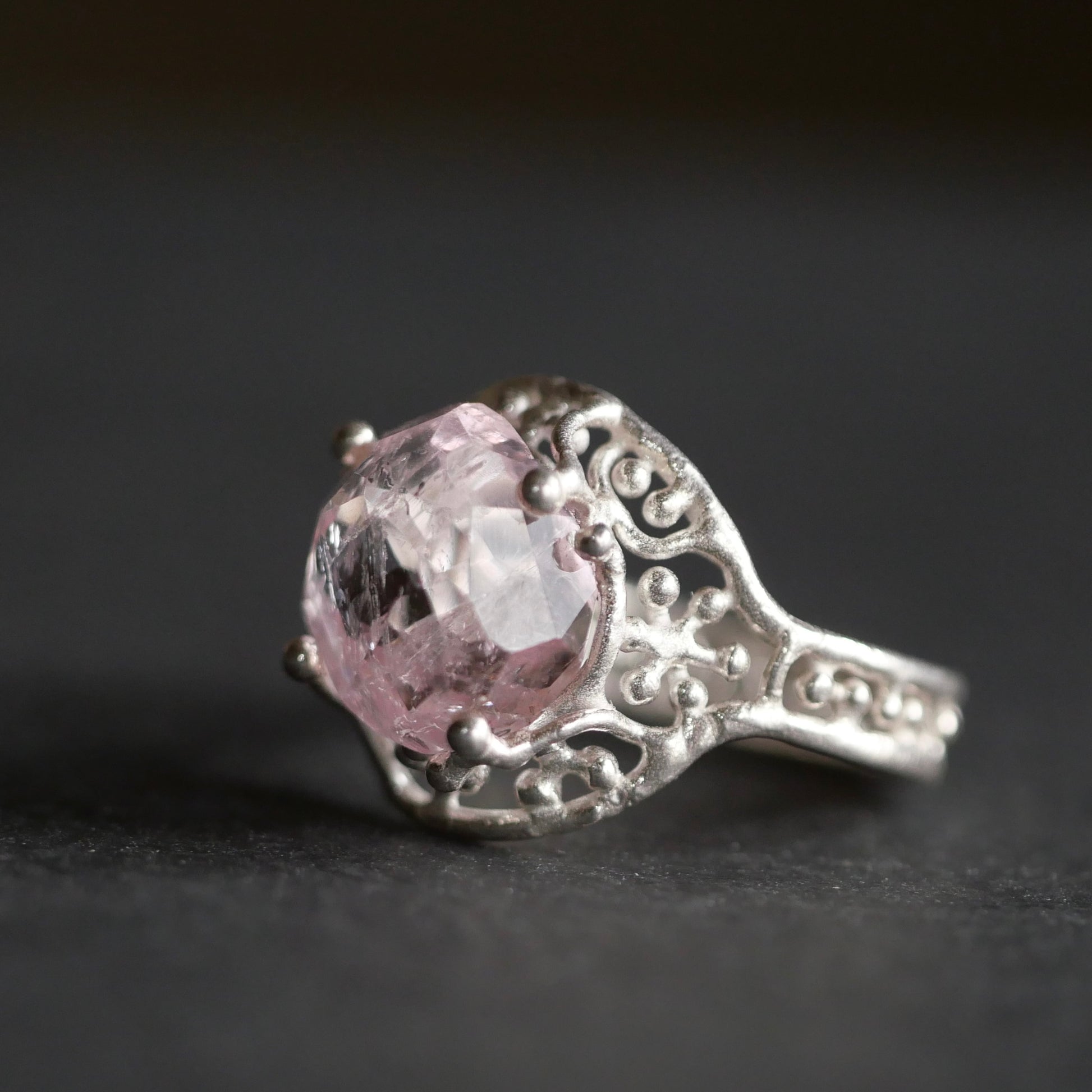 ピンクの透明感が美しい!モルガナイト。指にフィットするデザインがIKOIならではの毎日つけられる華やかなリング。