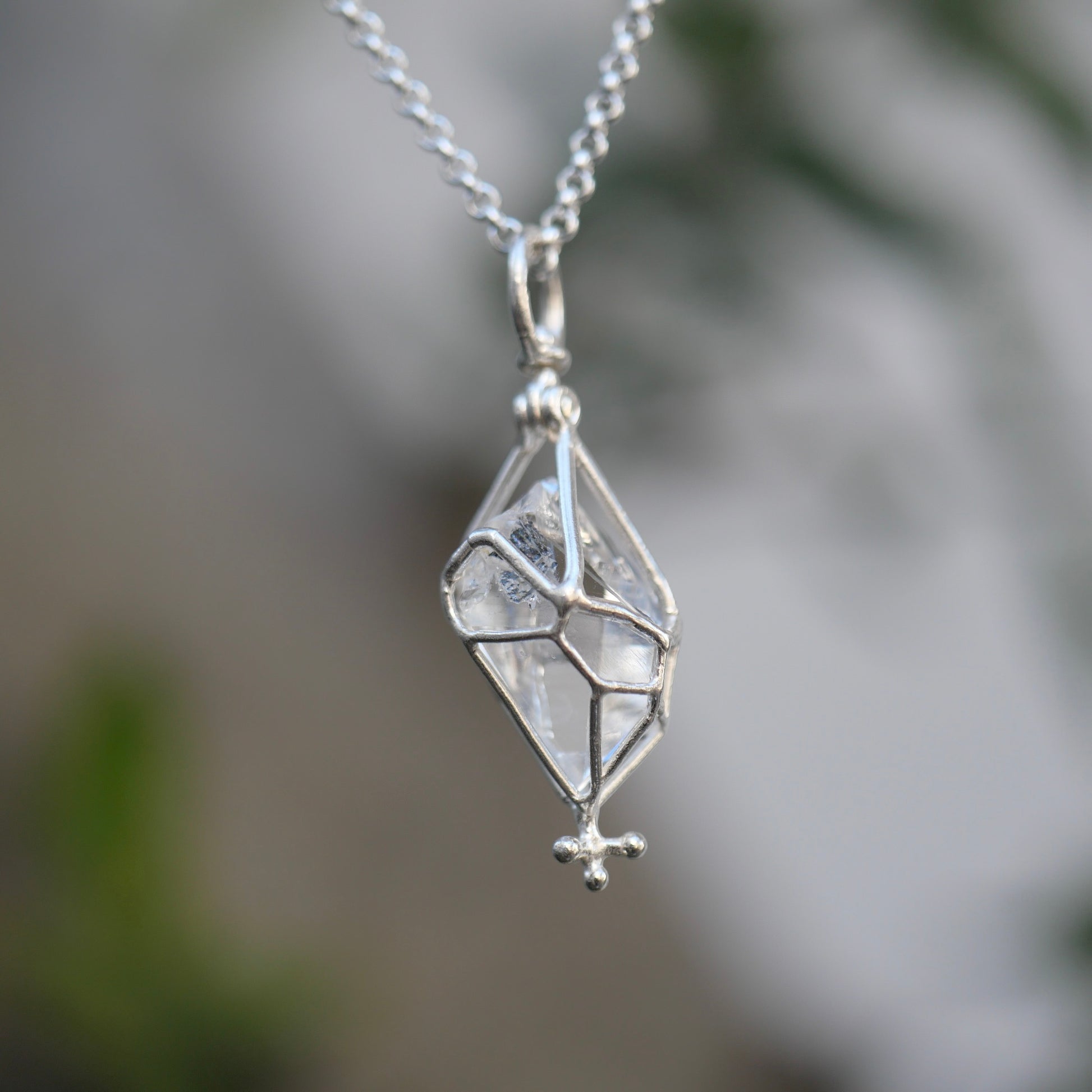 ハーキマーダイアモンド水晶の原石をいかしたデザイン。