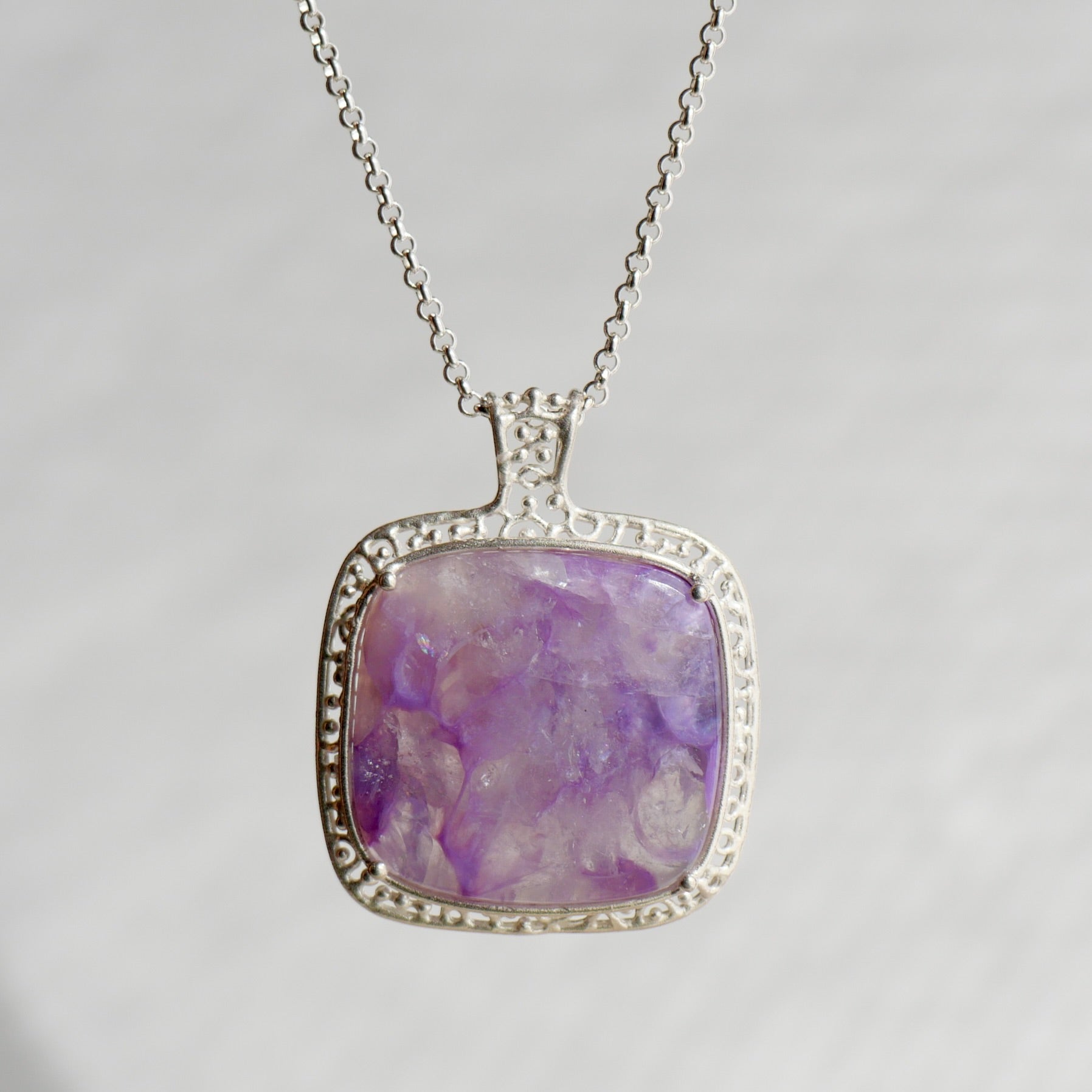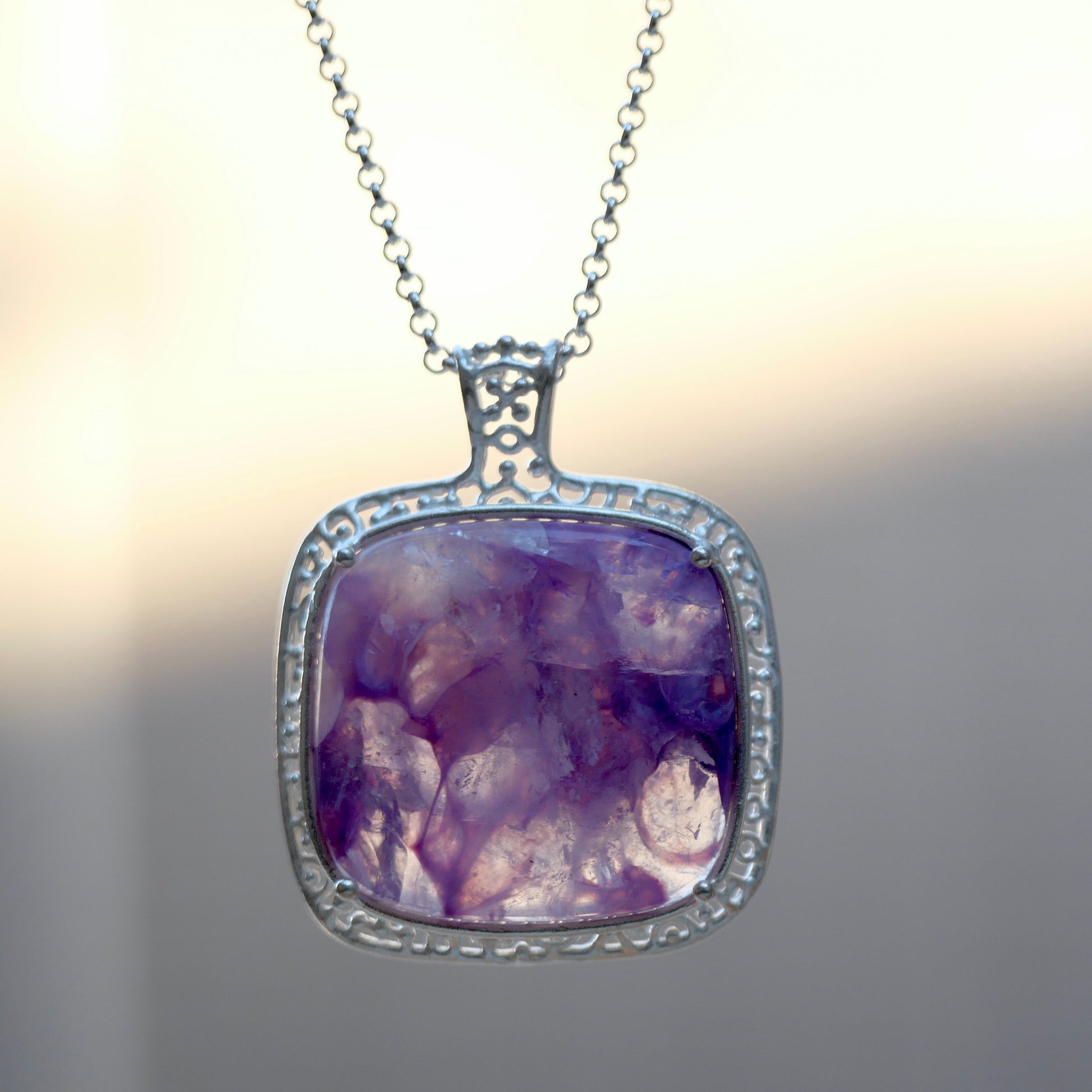 紫の絵の具が水晶の中に溶けているような表情がとても魅力的。