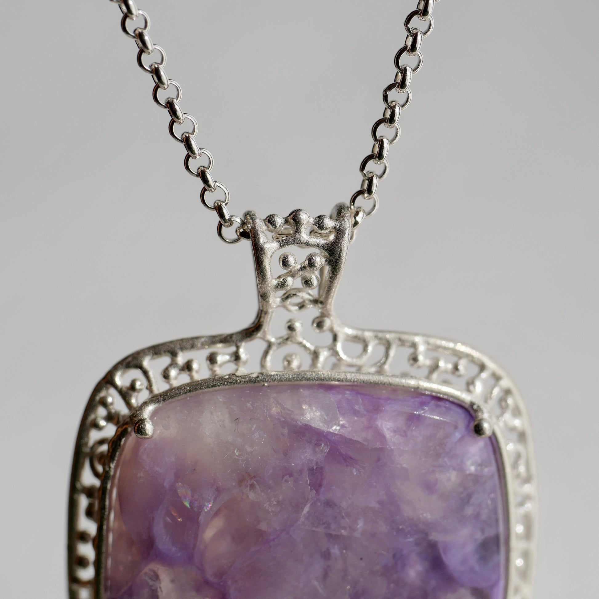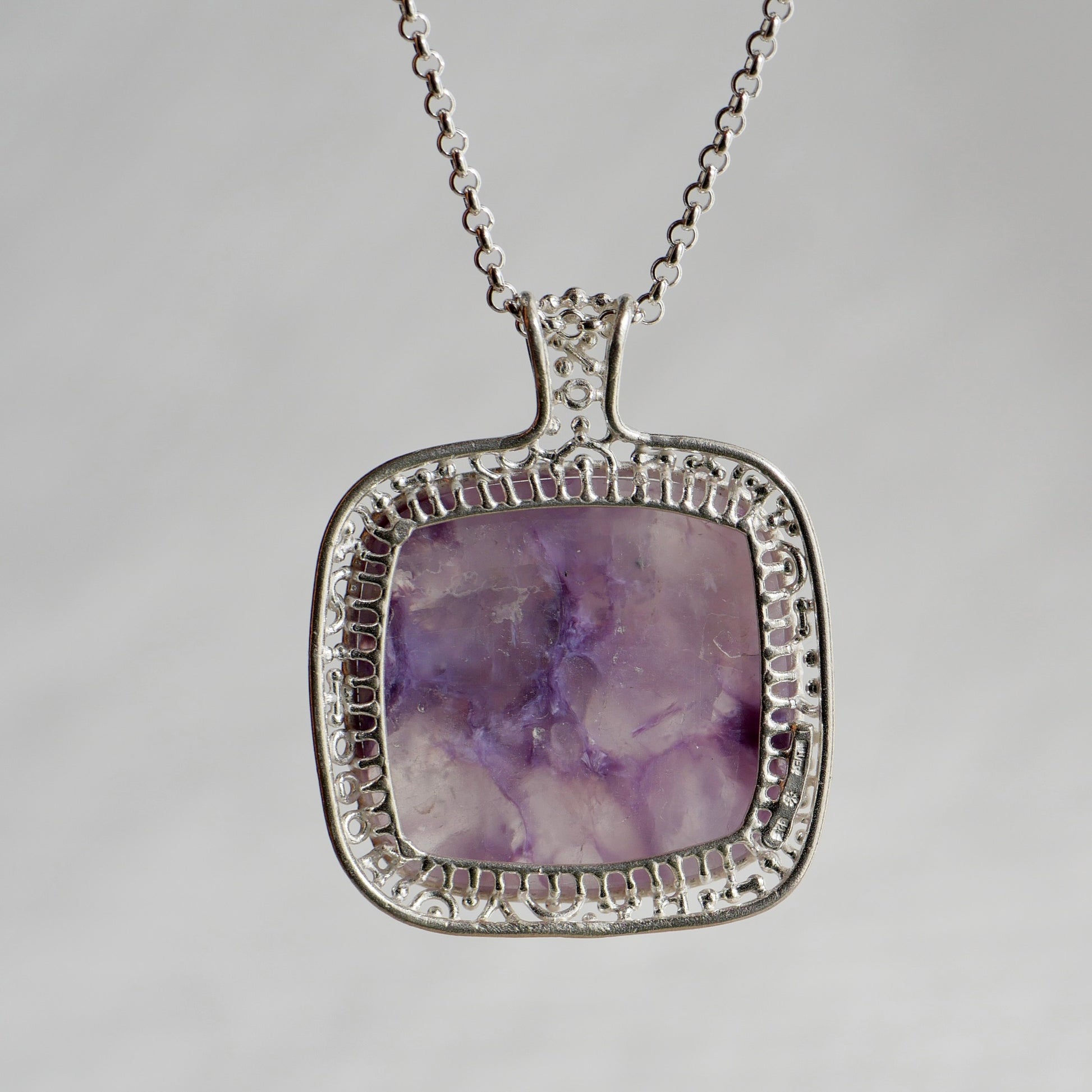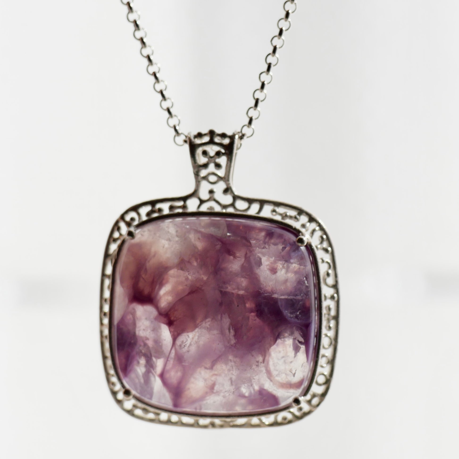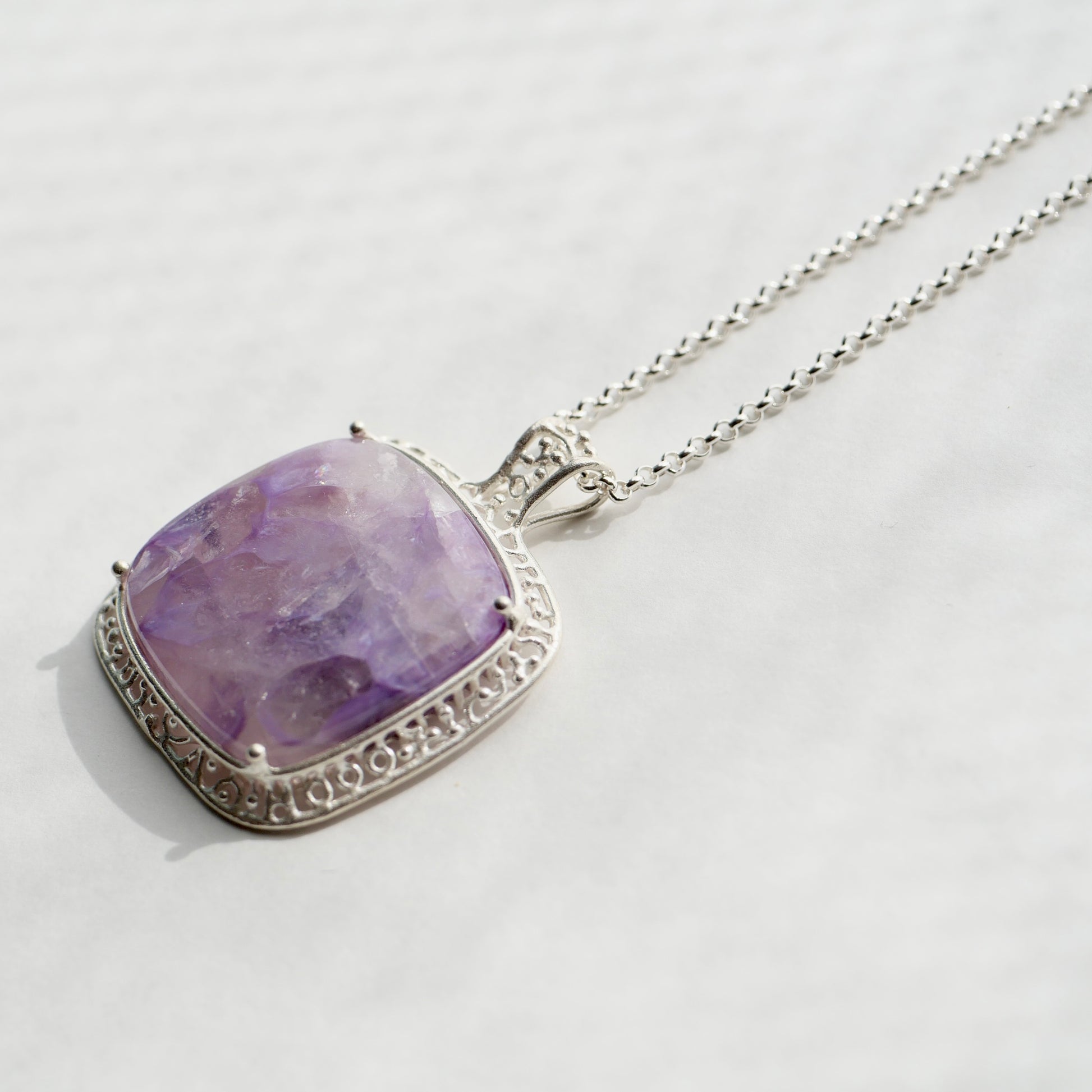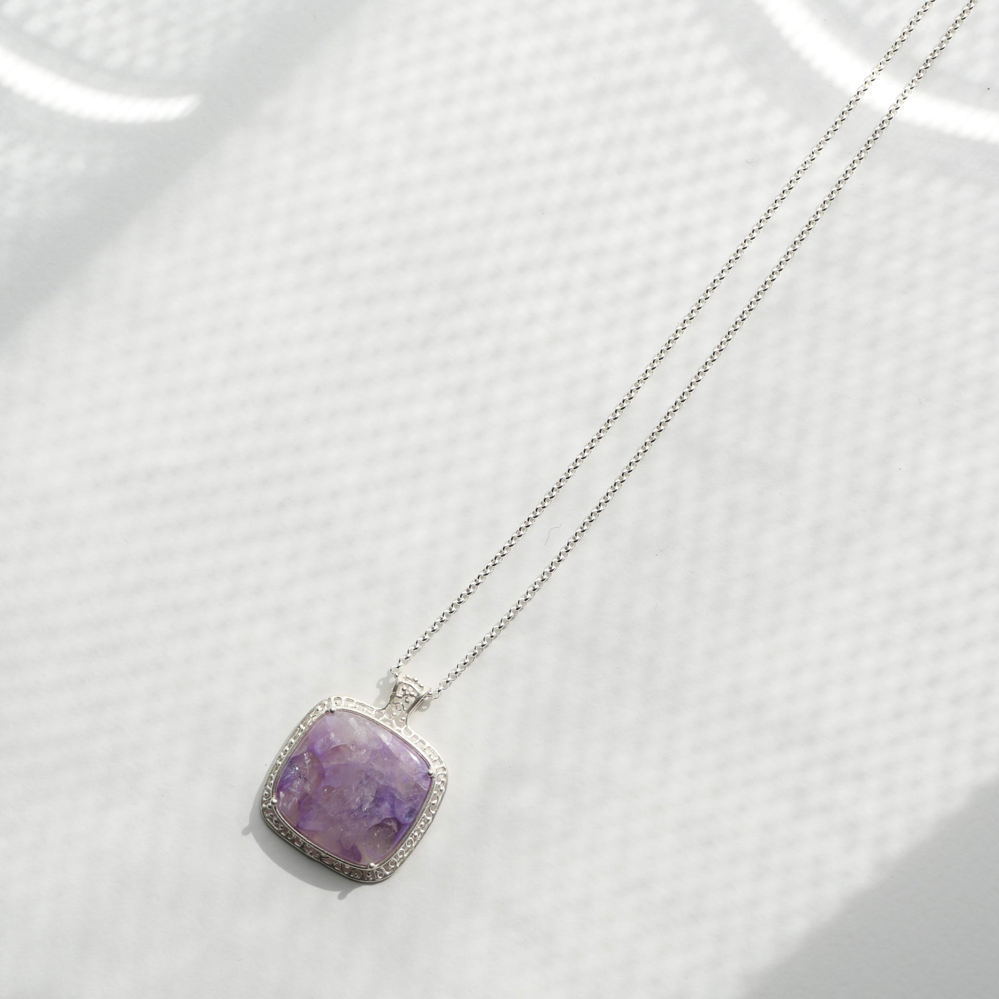 [Pendant part: W 3.5 cm, H4.2 cm, size of stone only: W2.8 cm, H2.8 cm, length of chain: 60 cm].