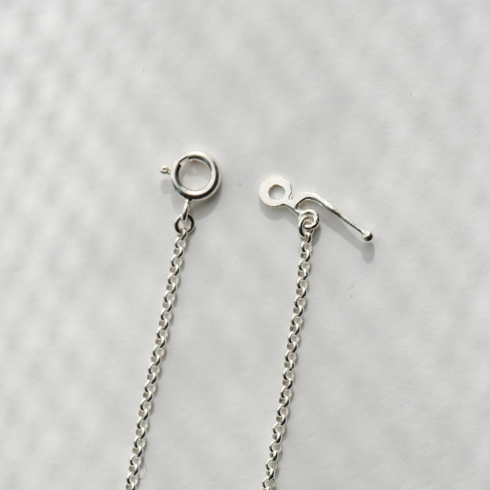シルバーチェーンの留め具はIKOI オリジナルの仕様で、ネックレスがチェーンから落ちないように工夫されています。