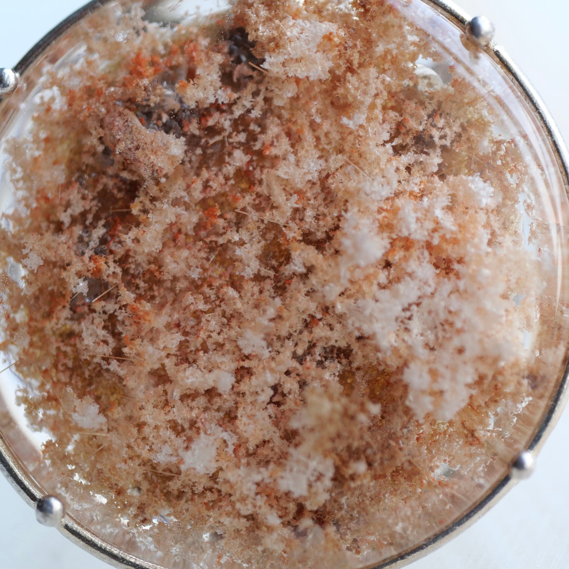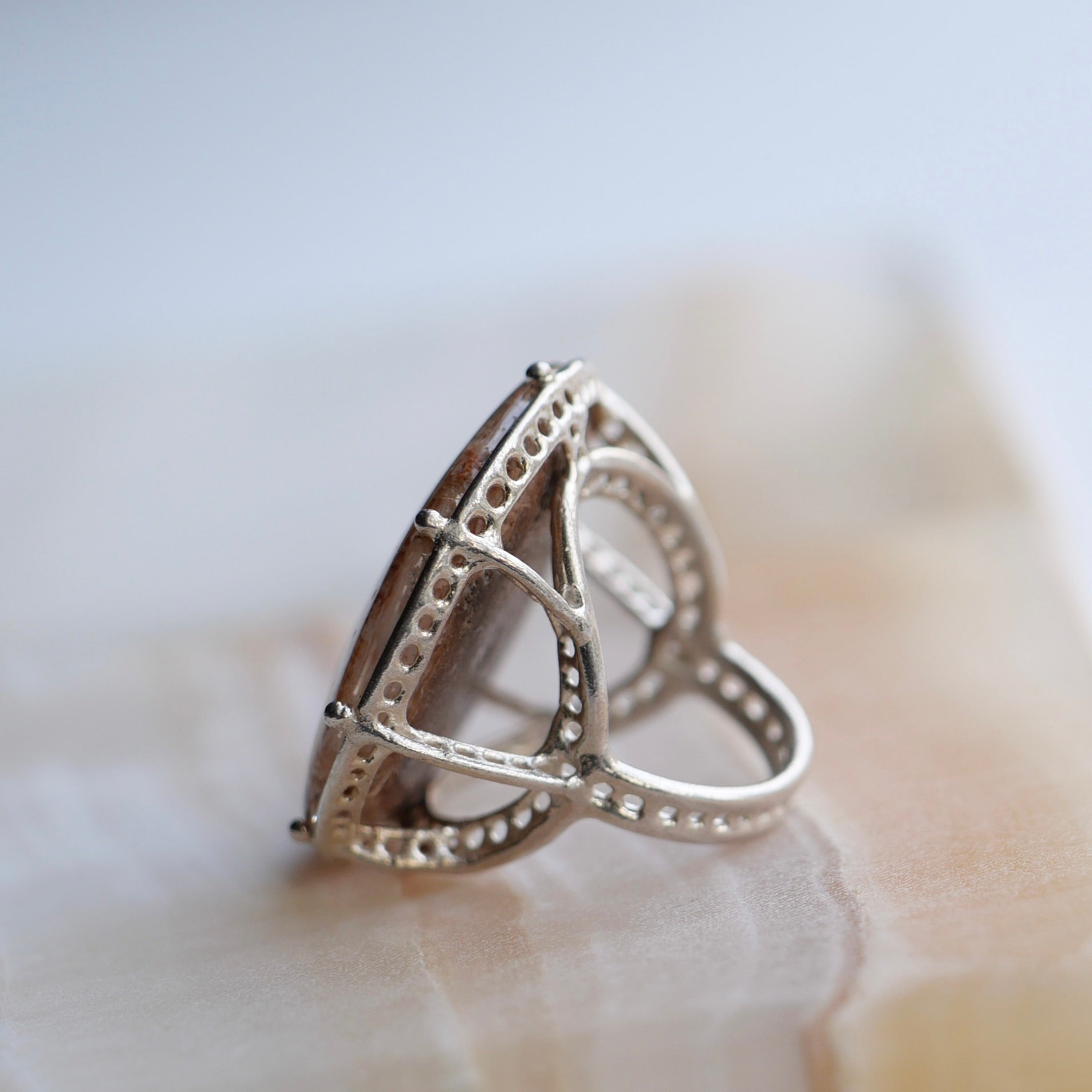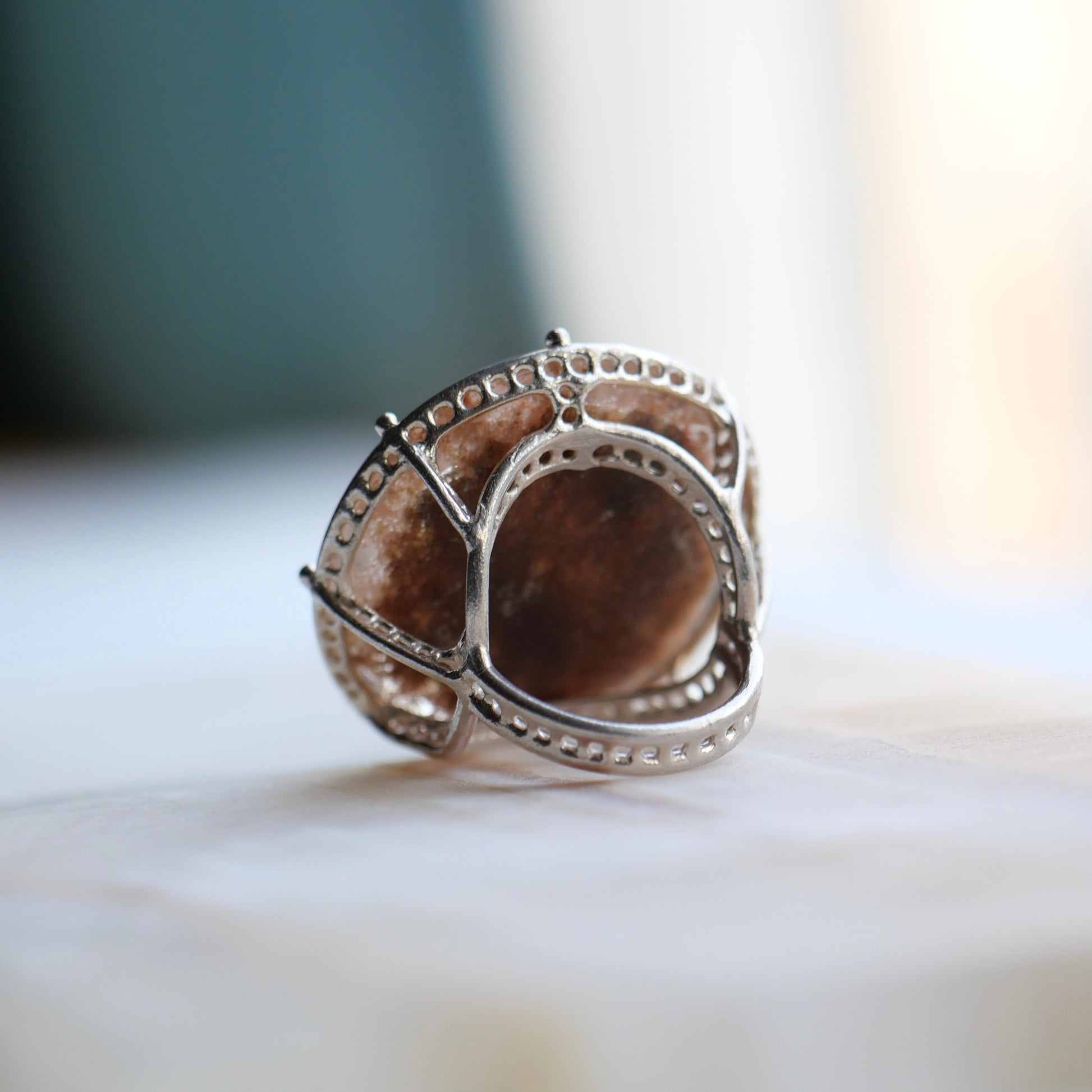 Garden quartz with plenty of transparency. The large round cabochon has a strong presence. IKOI's unique design makes this ring very comfortable to wear and lightweight, even for a ring with large stones.