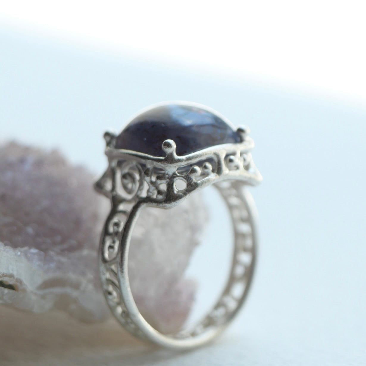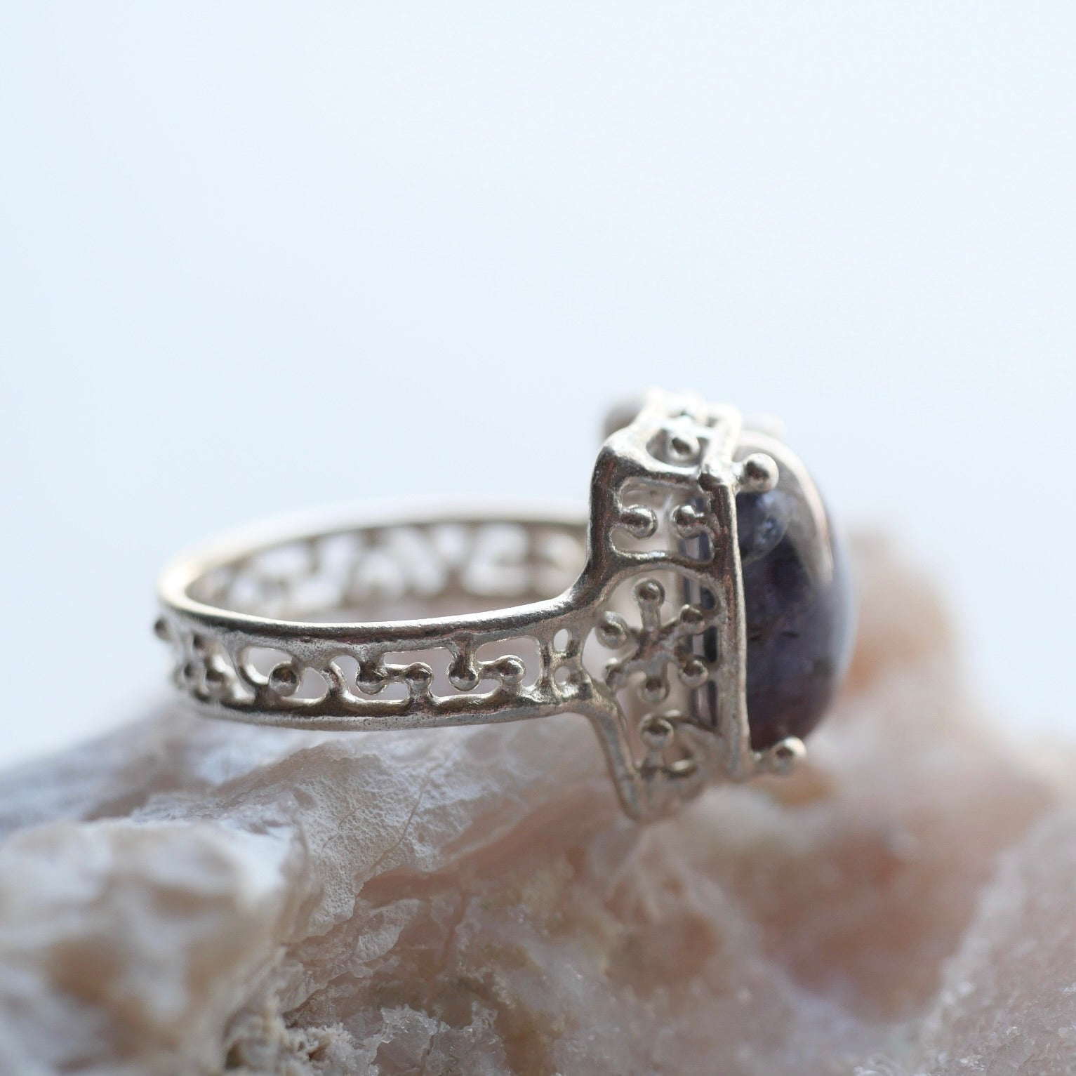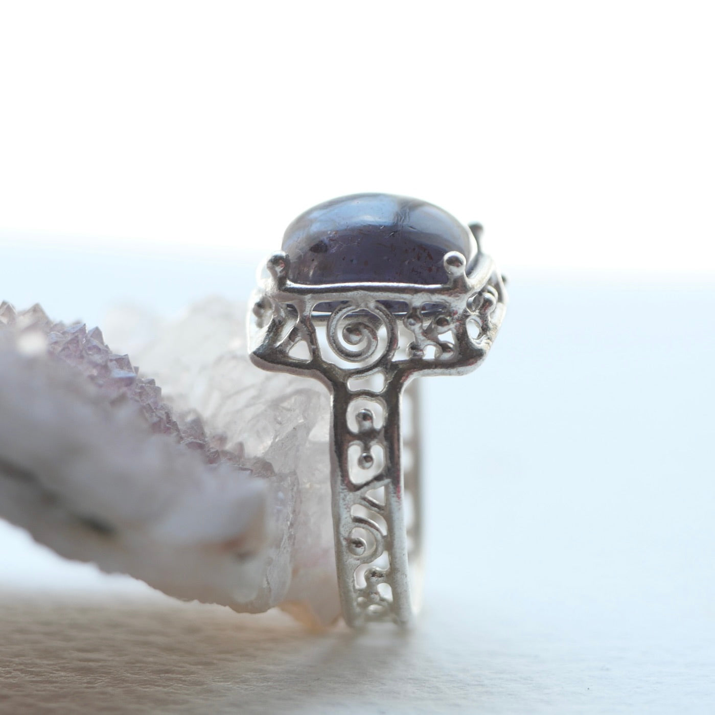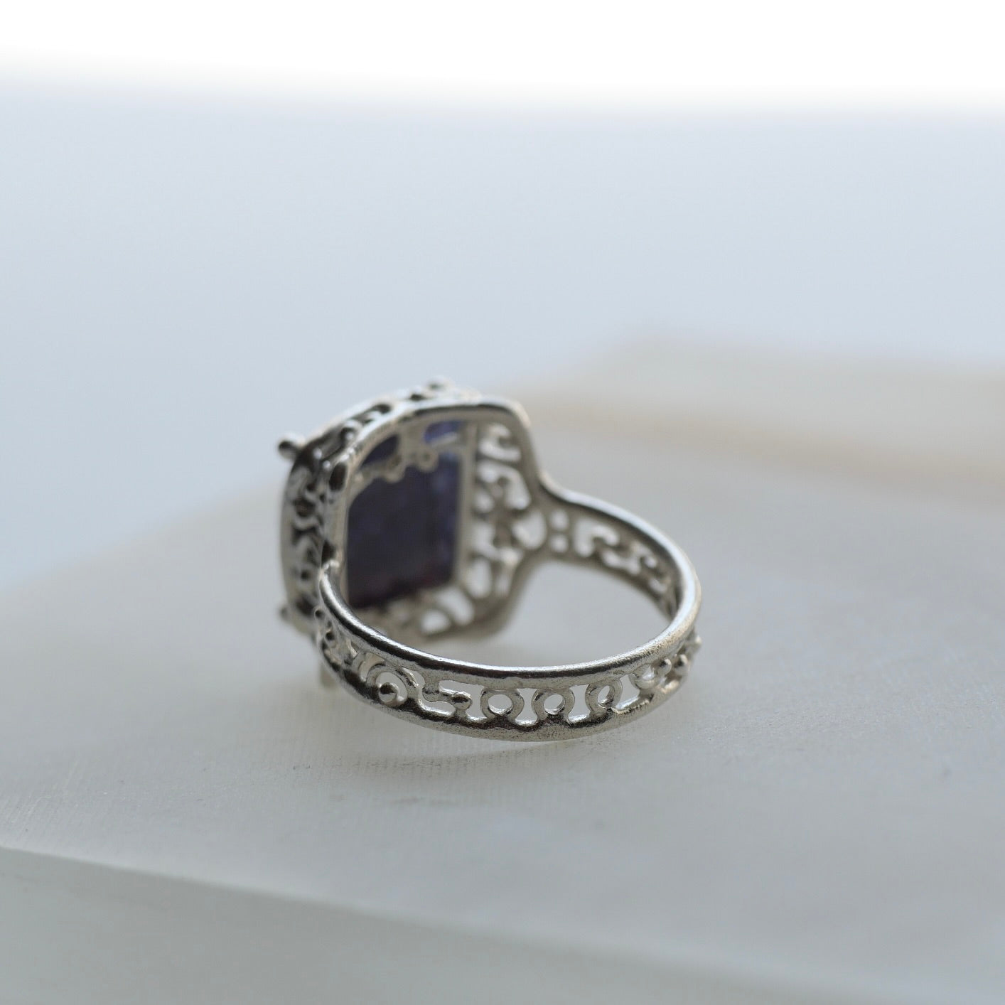 濃い紫の中に、虹色のラメが天然で入っている魅力的な石。光に当たるときらりとヒカリます。