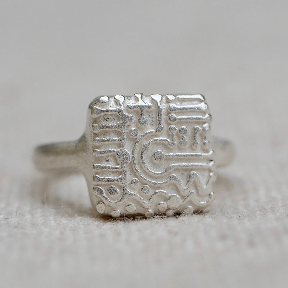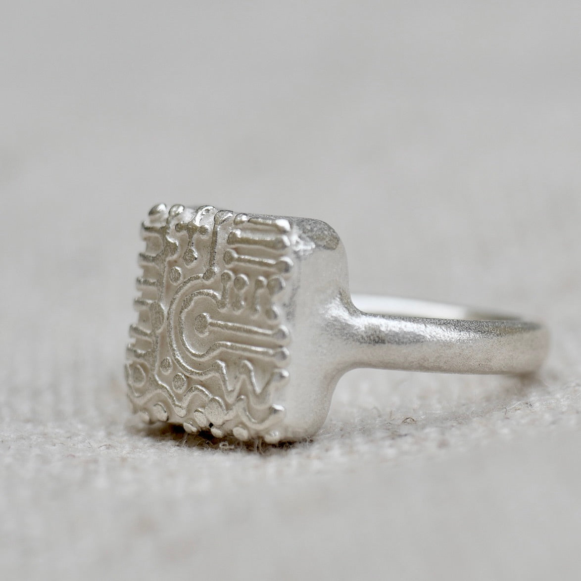 Enjoy it in coordination with the IKOI Workshop rings. Of course, also on its own. Over time, the sulphation of the silver will further reveal the pattern.