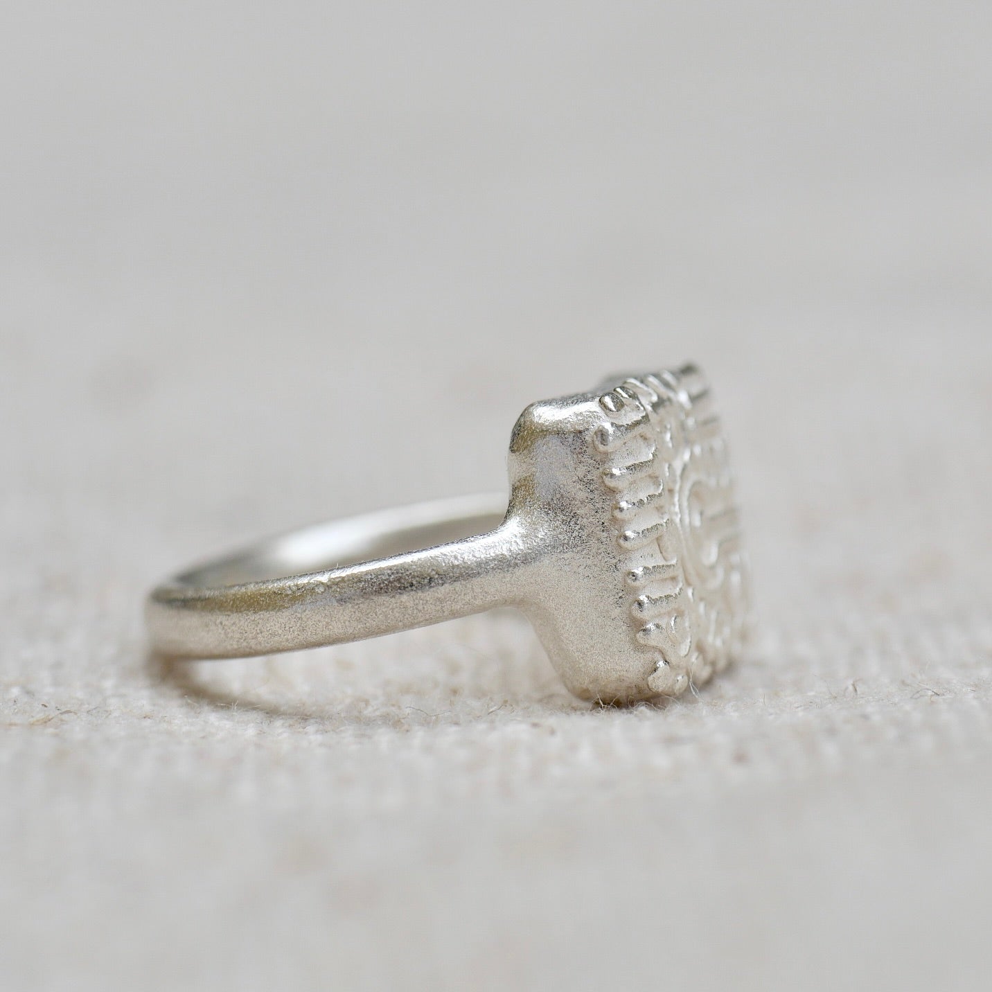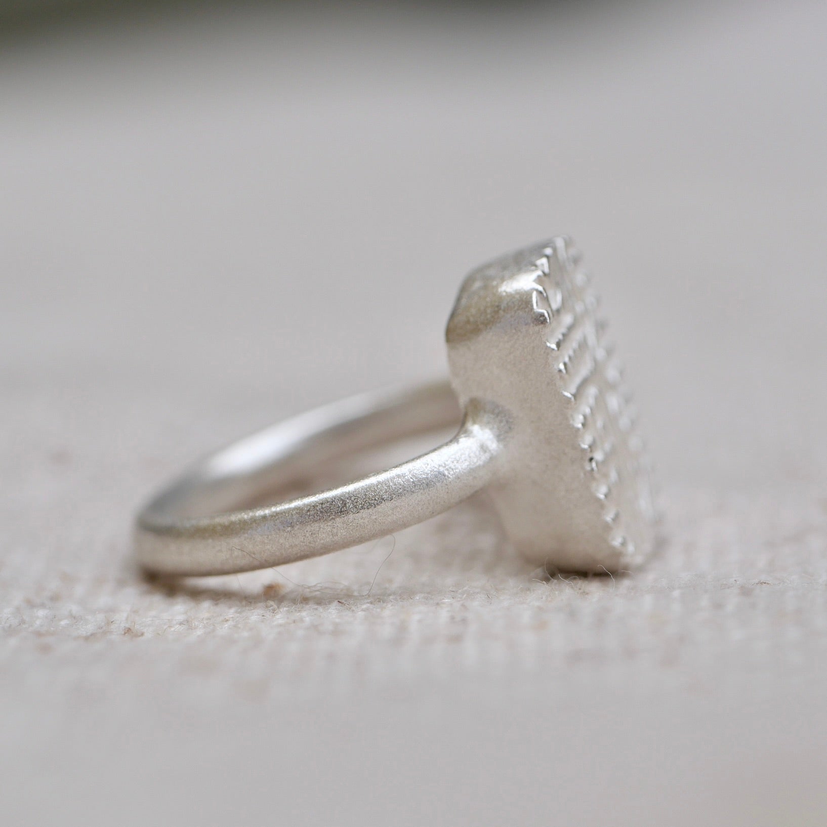 Granework is an ancient method of jewelry making in which sharp blades were not yet available, and the use of this technique gives the rings the feel of found objects or antique rings.